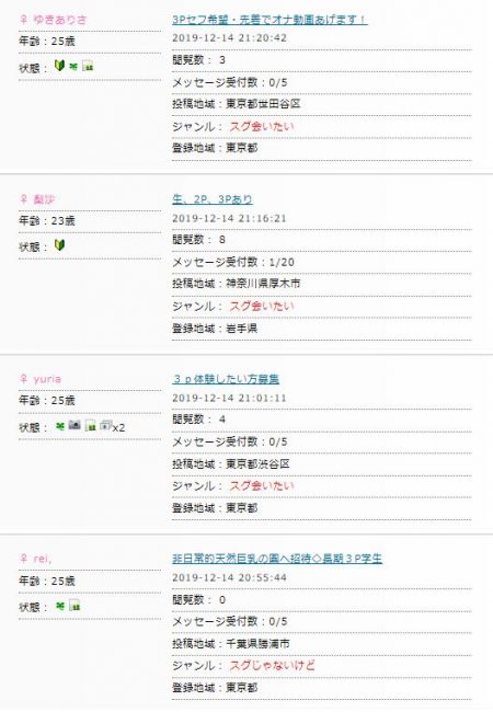 これで3Pセックスが体験できそうな相手を探すことができます。